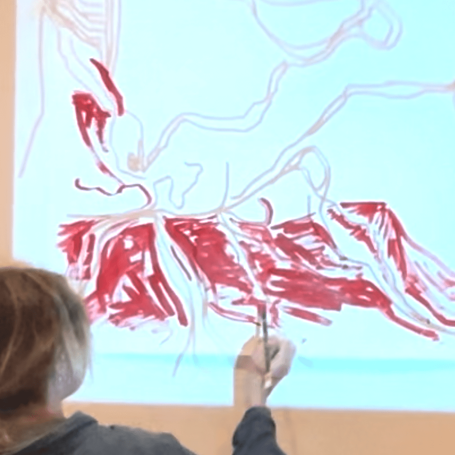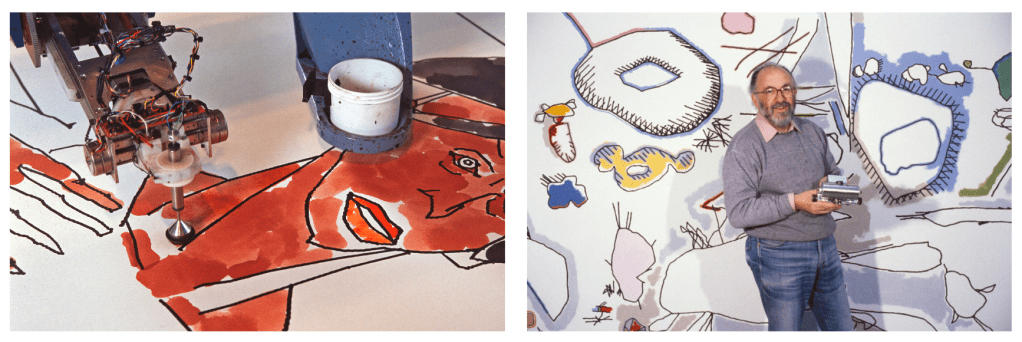 This project uses abstract painting’s capacity to play between the nameable and the strange to investigate what might lie in the spaces between what we can specify to AI with text and the kinds of images we want to produce. It is a prototype meant to explore how one might interact with the latent space of AI algorithms beyond semantic representations — how human-nonhuman collaborative paintings might provoke images that surprise.