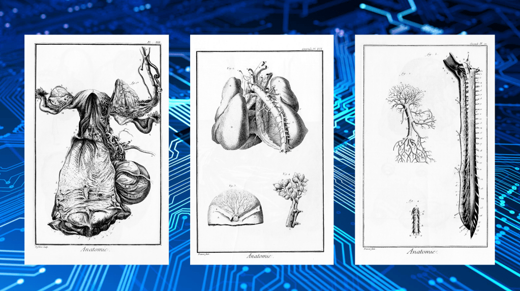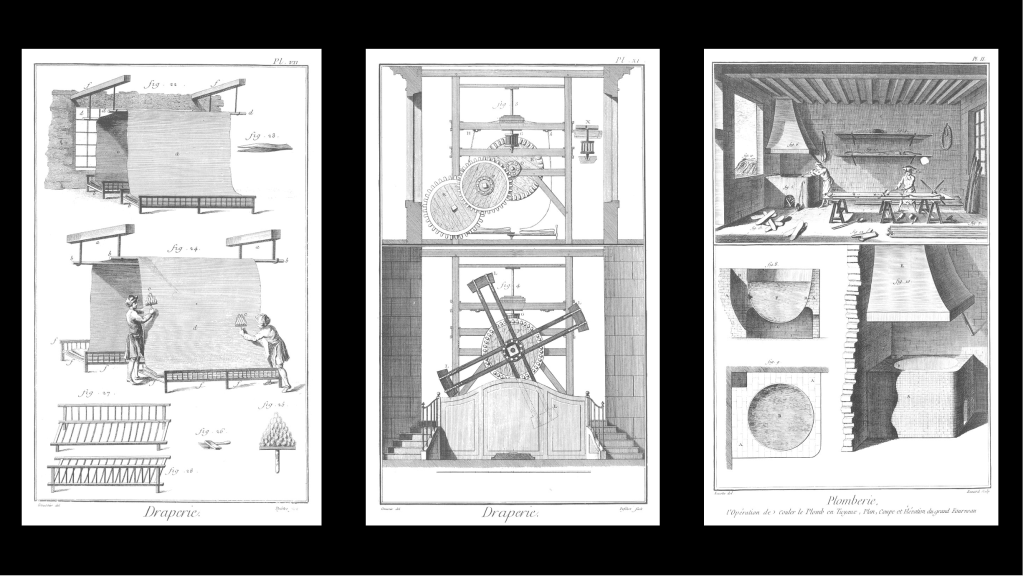 Printmaking processes form a conceptual and material bridge between contemporary technology and historical encyclopedia projects like the Enlightenment’s Encyclopedie — tying together these multiple moments in communications technology and the circulation of knowledge.